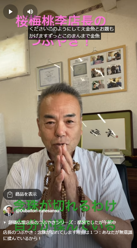 お数珠、念珠が切れる?私は何十年も使っていますが一度も切れた事は有りません。動画で見て頂いてお分かりになると思いますが、 合掌しているだけで念珠が切れるでしょうか? 答えは一つです。 無意識かもしれませんが、あなたが自分で切っているのです。