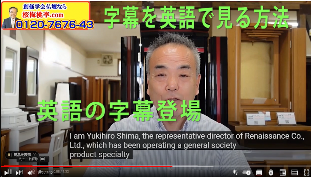 Subtitles for Youtube videos: I actually set the subtitles from Japanese to English while taking screen captures. When you watch videos on YouTube on your PC, smartphone, or tablet, you can convert them into your native language. This time, it is a video that actually shows how to convert Japanese to English, so please refer to it.