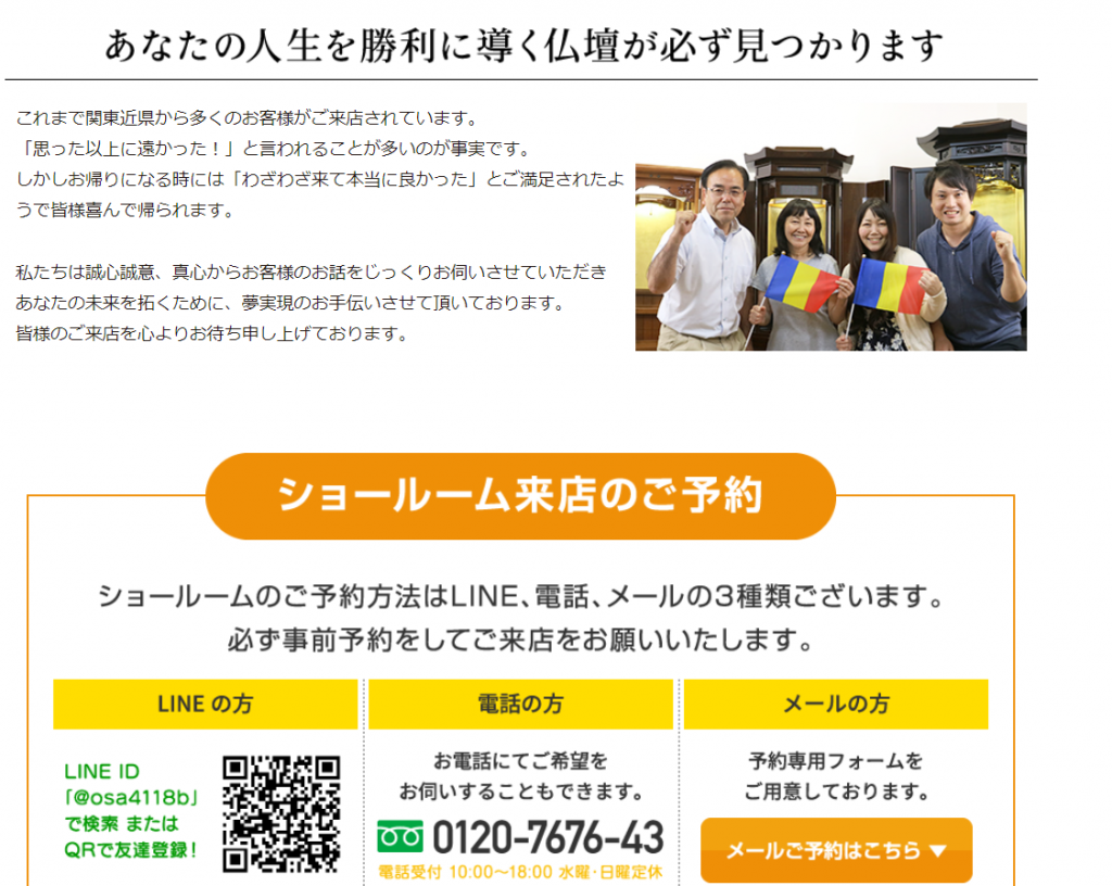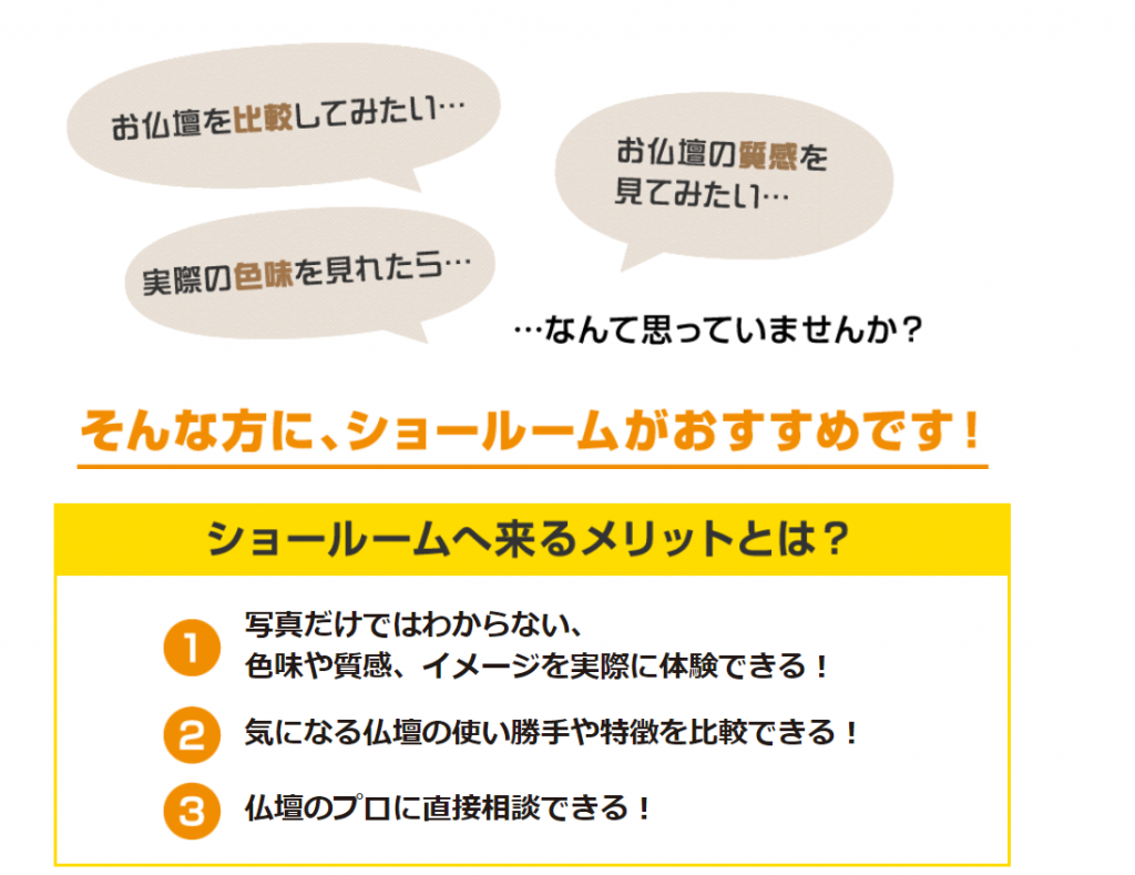 仏壇の裏側までプロが丁寧に説明して、お見せします!業界一の情報量を誇っております。