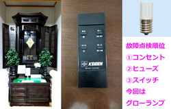 名古屋から、「仏壇故障:扉は動くが蛍光灯が点灯しない」とのお電話を頂きました