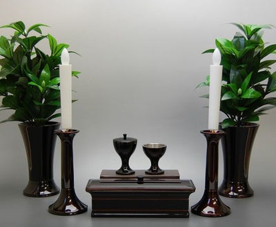 中型仏壇用 風雅ワイン色仏具セット 造花しきみ・電池ローソク付のレビューを書く