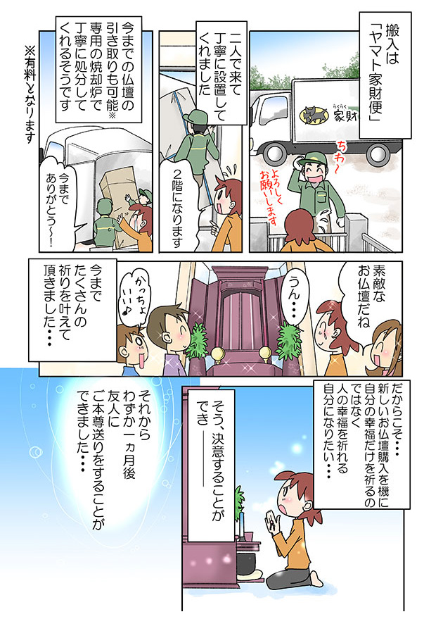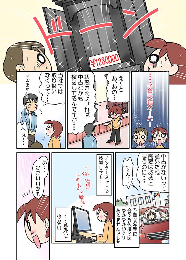 お客様に中古仏壇を購入した体験を漫画にしていただきました